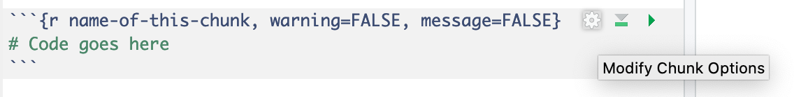 Hay distintas opciones diferentes que puedes establecer para cada chunk. Puedes ver una lista completa en la Guía de referencia de RMarkdown o en el sitio web de knitr.