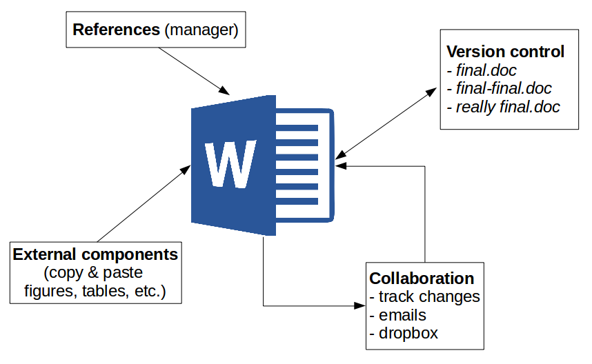 Aunque útil, este procesador de texto tiene diversas barreas, ya sea de pago/licencias, problemas de versionamiento (difícil saber quién hizo qué) y no permiten reproducibilidad (tenemos que copiar y pegar). Aquí entra el texto plano.
